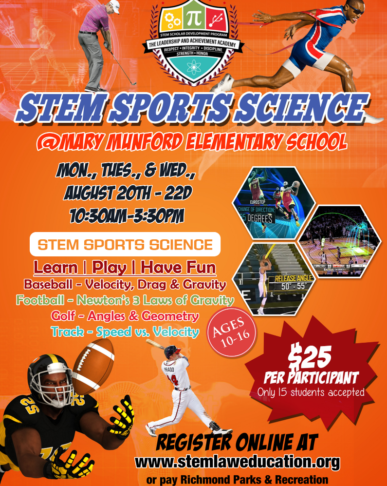 Register online at http://stemlaweducation.org or pay Richmond Parks and Recreation